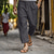 Herren Leinenhosen Hose Sommerhose Knöpfe Fronttasche Falten Einfach Komfort Atmungsaktiv Volle Länge Lässig Täglich Streetwear Ethno-Stil Retro Vintage Lässiger Schnitt Schwarz Weiß
