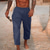 Herren Leinenhosen Hose Sommerhose Kordelzug Elastischer Bund Weites Bein Einfach Komfort Atmungsaktiv Volle Länge Lässig Täglich Ferien Mode Klassicher Stil Lässiger Schnitt Weiß Marineblau