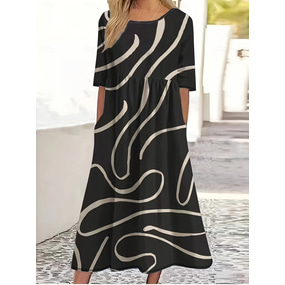 Damen Maxikleid Freizeitkleid Klassisch Strand Lässiger Schnitt Grafik Abstrakt Halbarm Rundhalsausschnitt Blau Schwarz Purpur Orange Sommer Frühling