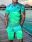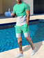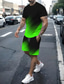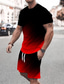 Herren Farbverlauf 2St T-Shirts-Sets Sommeroberteile Kurzarm Kurze Hosen Rundhalsausschnitt Athleisure Sport & Outdoor Lässig Täglich 3D-Druck Sommer Grün Rote Blau