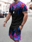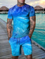 Herren Grafik Optische Täuschung 2St T-Shirts-Sets Passende Sets Kurzarm Kurze Hosen Rundhalsausschnitt Designer Lässig Bequem Outdoor Urlaub Täglich 3D-Druck Frühling & Sommer Blau Rot Grün