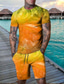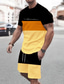 Herren Grafik Farbblock 2St T-Shirts-Sets Kurzarm Kurze Hosen Rundhalsausschnitt Designer Lässig Bequem Outdoor Urlaub Täglich 3D-Druck Frühling & Sommer Schwarz Gelb Rosa