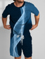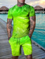 Herren Linie 2St T-Shirts-Sets Sommeroberteile Kurzarm Kurze Hosen Rundhalsausschnitt Streetwear Sport Lässig Sport & Outdoor Lässig 3D-Druck Sommer Schwarz Hellgrün Blau