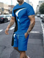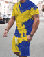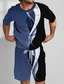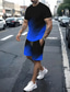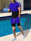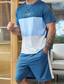 Herren Farbblockmuster 2St T-Shirts-Sets Sommeroberteile Kurzarm Kurze Hosen Rundhalsausschnitt Sport Lässig Outdoor Urlaub Täglich Bedruckt Sommer Blau-Gelb Blau Purpur