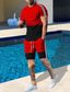 Herren Grafik Farbblock 2St T-Shirts-Sets Shorts und T-Shirt-Set T-Shirt-Outfits Kurzarm Rundhalsausschnitt Designer Lässig Bequem Outdoor Urlaub Täglich 3D-Druck 2 teilig Frühling & Sommer Weiß Rote