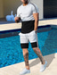 Herren Zweiteilig T-Shirt Anzüge Trainingsanzug Shorts und T-Shirt-Set Kurzarm Kurze Ärmel Kurze Hose Rundhalsausschnitt Sommer Farbblock Gymnastik Lässig 2 teilig Gestrickt Urlaub Alltagskleidung