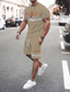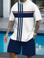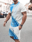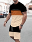 Herren Gestreift 2St T-Shirts-Sets Sommeroberteile Kurzarm Kurze Hosen Rundhalsausschnitt Sport Lässig Outdoor Urlaub Sport 3D-Druck Sommer Braun aschgrau Hellblau