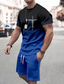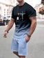 Herren Grafik Farbverlauf 2St T-Shirts-Sets Tee-Set Kurzarm Kurze Hosen Rundhalsausschnitt Mode Leicht Basic Straße Täglich Sport Druck Sommer Frühling Marineblau Grün Dunkelgray