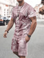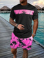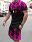 Herren 3D-Druck 2St T-Shirts-Sets Sommeroberteile Kurzarm Kurze Hosen Rundhalsausschnitt Sport Lässig Outdoor Urlaub Täglich Bedruckt Sommer Violett Rubinrot Rosa