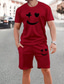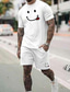 Herren Lächelndes Gesicht 2St T-Shirts-Sets Sommeroberteile Kurzarm Kurze Hosen Rundhalsausschnitt Sport Lässig Outdoor Urlaub Sport 3D-Druck Sommer Weiß Rote
