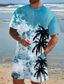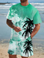 Herren Palme 2St T-Shirts-Sets Sommeroberteile Kurzarm Kurze Hosen Rundhalsausschnitt Lässig Resort Lässig Ausgehen Urlaubskleidung 3D-Druck Sommer Blau Rosa Grün