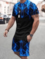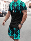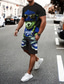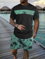 Herren Grafik 2St T-Shirts-Sets Sommeroberteile Kurzarm Kurze Hosen Rundhalsausschnitt Sport Lässig Outdoor Urlaub Sport 3D-Druck Sommer Schwarz Blau Grün