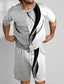 Herren Geometrisch Linie 2St T-Shirts-Sets Sommeroberteile Kurzarm Kurze Hosen Rundhalsausschnitt Sport Lässig Outdoor Urlaub Sport 3D-Druck Sommer Rubinrot Weiß aschgrau