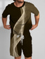 Herren Geometrisch Linie 2St T-Shirts-Sets Sommeroberteile Kurzarm Kurze Hosen Rundhalsausschnitt Sport Lässig Outdoor Sport Täglich 3D-Druck Sommer Rubinrot Braun aschgrau