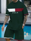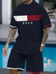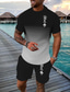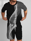 Herren Grafik Farbblock 2St T-Shirts-Sets Shorts und T-Shirt-Set T-Shirt-Outfits Kurzarm Rundhalsausschnitt Designer Lässig Bequem Outdoor Urlaub Täglich 3D-Druck 2 teilig Frühling & Sommer Schwarz