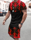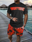 Herren Grafik 2St T-Shirts-Sets Kurzarm Kurze Hosen Rundhalsausschnitt Athleisure Sport Lässig Täglich 3D-Druck Sommer Rubinrot Schwarz Rote