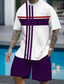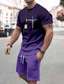 Herren Grafik 2St T-Shirts-Sets Sommeroberteile Kurzarm Kurze Hosen Rundhalsausschnitt Sport Lässig Outdoor Urlaub Sport 3D-Druck Sommer Weiß Purpur Braun