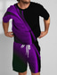 Herren Ombre 2St T-Shirts-Sets Sommeroberteile Kurzarm Kurze Hosen Rundhalsausschnitt Sport Lässig Outdoor Urlaub Sport 3D-Druck Sommer Violett Rubinrot Rote