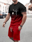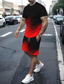 Herren Grafik Farbverlauf 2St T-Shirts-Sets Tee-Set Kurzarm Kurze Hosen Rundhalsausschnitt Mode Leicht Basic Straße Täglich Sport Druck Sommer Frühling Rote Blau