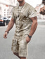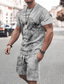 Herren Text / Nummer 2St T-Shirts-Sets Sommeroberteile Kurzarm Kurze Hosen Rundhalsausschnitt Sport Lässig Outdoor Sport Täglich 3D-Druck Sommer Grau Grün Braun