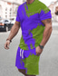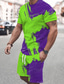 Herren Geometrisch 2St T-Shirts-Sets Sommeroberteile Kurzarm Kurze Hosen Rundhalsausschnitt Sport Lässig Outdoor Urlaub Sport 3D-Druck Sommer Violett Rubinrot Grün