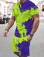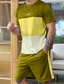 Herren Farbblock-Nähte 2St T-Shirts-Sets Sommeroberteile Kurzarm Kurze Hosen Rundhalsausschnitt Sport Lässig Outdoor Urlaub Täglich Bedruckt Sommer Gelb Orange Grün