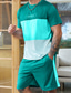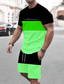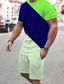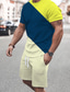 Herren Farbblock 2St T-Shirts-Sets Sommeroberteile Kurzarm Kurze Hosen Rundhalsausschnitt Sport Lässig Outdoor Urlaub Sport 3D-Druck Sommer Grün Gelb Blau