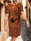 Herren Streifen 2St T-Shirts-Sets Sommeroberteile Kurzarm Kurze Hosen Rundhalsausschnitt Athleisure Sport Lässig Täglich 3D-Druck Sommer Rubinrot Braun
