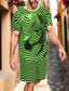 Herren Gestreift 2St T-Shirts-Sets Sommeroberteile Kurzarm Kurze Hosen Rundhalsausschnitt Sport Lässig Outdoor Urlaub Sport 3D-Druck Sommer Schwarz Gelb Grün