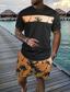 Herren Palme 2St T-Shirts-Sets Sommeroberteile Kurzarm Kurze Hosen Rundhalsausschnitt Sport Lässig Strandurlaub Outdoor Sport Täglich 3D-Druck Sommer Schwarz Grün Rot