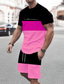 Herren Grafik Farbblock 3D-Druck 2St T-Shirts-Sets Übergröße set Kurzarm Kurze Hosen Rundhalsausschnitt Mode Designer Bequem Outdoor Lässig Täglich Druck Frühling & Sommer Weiß Rosa Blau