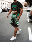 Herren Grafik Tarnung 2St T-Shirts-Sets Passende Sets Kurzarm Kurze Hosen Rundhalsausschnitt Designer Lässig Bequem Outdoor Urlaub Täglich 3D-Druck Frühling & Sommer Blau Rot Khaki