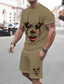 Herren Clownsmaske 2St T-Shirts-Sets Kurzarm Kurze Hosen Rundhalsausschnitt Streetwear Athleisure Sport & Outdoor Straße Alltagstauglich Rundhalsausschnitt Sommer Weiß Braun