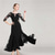 Damen Ballsaal Tanzkleid Strass Mesh Langarm Walzer Tango Wettbewerb Performance Kleid elegant schwarz