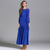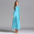 blaues Ombre-Tanzkleid für Damen mit Strass-Details, Glockenärmeln und ausgestelltem Rock – ideal für Latein, Tango und als Bühnenkleidung