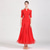 rotes Gesellschaftstanzkleid für Damen – schulterfreies A-Linien-Kleid mit Schlüssellochausschnitt und Tüllbesatz für Wettbewerbe, Latein- und Tanzveranstaltungen