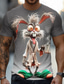 Herren Kaninchen Hahn Lustig T Shirt Kurzarm T-Shirt 3D-Druck Rundhalsausschnitt Hemd Übertrieben Designer Party Ferien Dunkelgray Grau Sommer Frühling Bekleidung S M L XL XXL XXXL