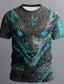 Herren Grafik Wolf Wikinger T Shirt Henley Hemd Kurzarm 3D-Druck Mode Klassisch Retro Vintage Sport im Freien Ferien Ausgehen Frühling & Sommer Blau Grün Khaki Grau Henley Henley T-Shirt