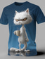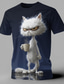 Herren Katze Lustig T Shirt Kurzarm T-Shirt 3D-Druck Rundhalsausschnitt Hemd Übertrieben Designer Party Ferien Blau Schwarz Weiß Sommer Frühling Bekleidung S M L XL XXL XXXL