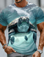 Herren Katze Lustig T Shirt Kurzarm T-Shirt 3D-Druck Rundhalsausschnitt Hemd Retro Vintage Lässig Straße Lässig Bar Hellblau Weiß Khaki Frühling & Sommer Bekleidung S M L XL XXL XXXL