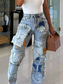 Damen Leggings Jeans im Used-Look Urlaub Vintage Lässig Volle Länge Hohe Taille Blumen Schmetterling Elastischer Bund Drucken Weich Bequem Dehnbar Outdoor Straße Blau Meerblau Sommer Frühling Herbst