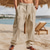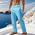 Herren Leinenhosen Hose Sommerhose Kordelzug Elastischer Bund Einfach Komfort Atmungsaktiv Volle Länge Lässig Täglich Ferien Mode Klassicher Stil Weiß Blau