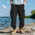 Herren Leinenhosen Hose Sommerhose Kordelzug Tasche Elastischer Bund Einfach Komfort Weich Täglich Outdoor Ausgehen Mode Lässig Schwarz Weiß
