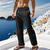 Herren Leinenhosen Hose Sommerhose Strandhose Kordelzug Tasche Elastischer Bund Einfach Komfort Atmungsaktiv Urlaub Täglich Ferien Hawaiianisch Boho Schwarz Weiß