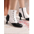 Damenstiefeletten im viktorianischen Stil mit Schnürung und Vintage-Brogue-Details – High Heels aus Kunstleder und Stoff für Retro-Mode