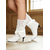 Weiße Vintage-Schnürstiefeletten im viktorianischen und edwardianischen Stil mit floralen Spitzeneinsätzen – elegante Retro-Sandalen mit Absatz für festliche Anlässe, Hochzeiten und Partys.