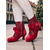 Rote High Heel-Stiefeletten mit Schnürung für Damen – schicke Retro-Stiefel aus Kunstleder und Spitze im viktorianischen Stil für Herbstoutfits, Streetwear und Feiertagsveranstaltungen