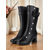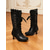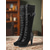 Kniehohe Stiefel aus schwarzer Spitze im viktorianischen Stil der 1890er Jahre für Damen mit Schleife und Akzentabsatz für elegante Vintage-Treffen und Themenpartys &Halloween-Veranstaltungen