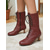 Burgunderfarbene Stiefeletten für Damen im viktorianischen Stil des 20. Jahrhunderts – Stiefeletten aus Kunstleder mit Schnürung und Absatz und Schleife für den Alltag und Vintage-Outfits