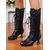 Schwarze kniehohe Schnürstiefel im viktorianischen Edwardian-Stil für Damen mit gewelltem Besatz und kleinem Absatz – Retro-Gothic-Stiefel im Stil der 1920er Jahre für Damen, perfekt für Cosplay,